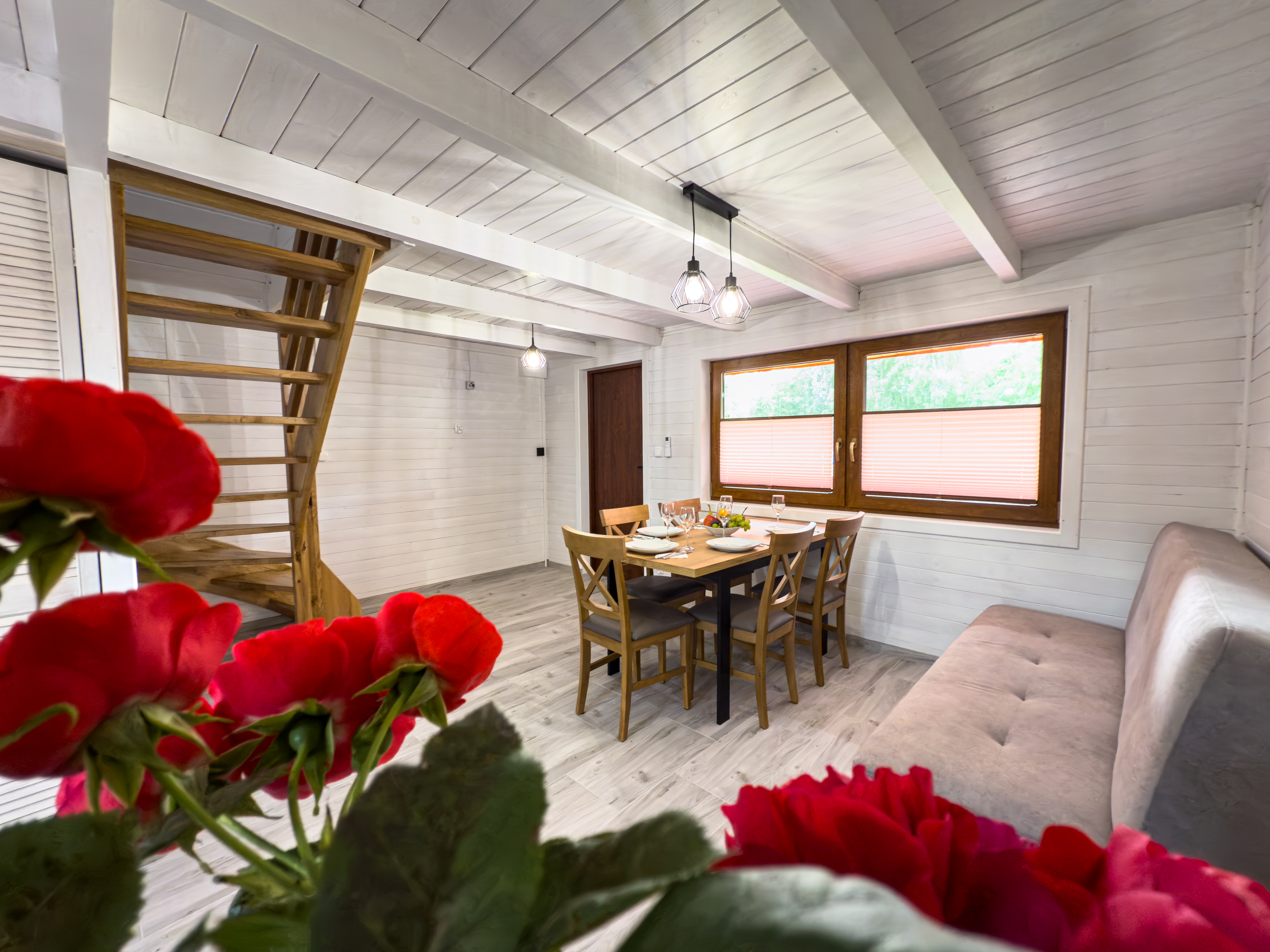 Nasze domki są starannie wyposażone w szereg udogodnień, aby uczynić Twój pobyt przyjemnym i komfortowym. Od miękkiej pościeli i szybkiego Wi-Fi po wyposażenie kuchni i przestronne miejsce do pracy.